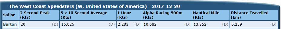 Today was going to be a day for practicing laydown jibes... didn't happen. Looked on the webcam before rigging, saw bundles of seaweed on the beach. Fortunately, I brought my only weed fin, the Black Project Freeride Delta 21 cm. Decided to rig the Retro to make it easier to waterstart when I would certainly botch port tack laydowns. First run across the bay was decent, the BP Delta obviously would not point like a slalom fin, but it held pretty well, no spin outs. The pluses of using the BP Delta was that I could make a run deep in to the mangrove shallows, which I did, and it did a wonderful job with the floating weed patches. Unfortunately, I swung wide on the jibe so only a little part of the jibe counted in the Alpha, but the jibe felt good. Back to the launch area for some minor adjustments and another run, also decent but a little too deep and hit the mud bottom in the mangroves. Turned around and realized I was in trouble. The wind turbine south of the bay usually points between NE and SE, it was now pointing almost S which meant I had to sail directly into the wind to get back. This was due to a rain squal moving through south of the bay. OK, took the indirect route back but the wind was also dropping so it was mostly just a long slow slog. Finally got back to the launch area and waited, and waited for the wind to pick back up. As the graph shows, it didn't. Good for Aron, Amado, and Taty on their foils, not so good for me rigged for high teen wind speeds... Basically, sailing session was over after only two runs...